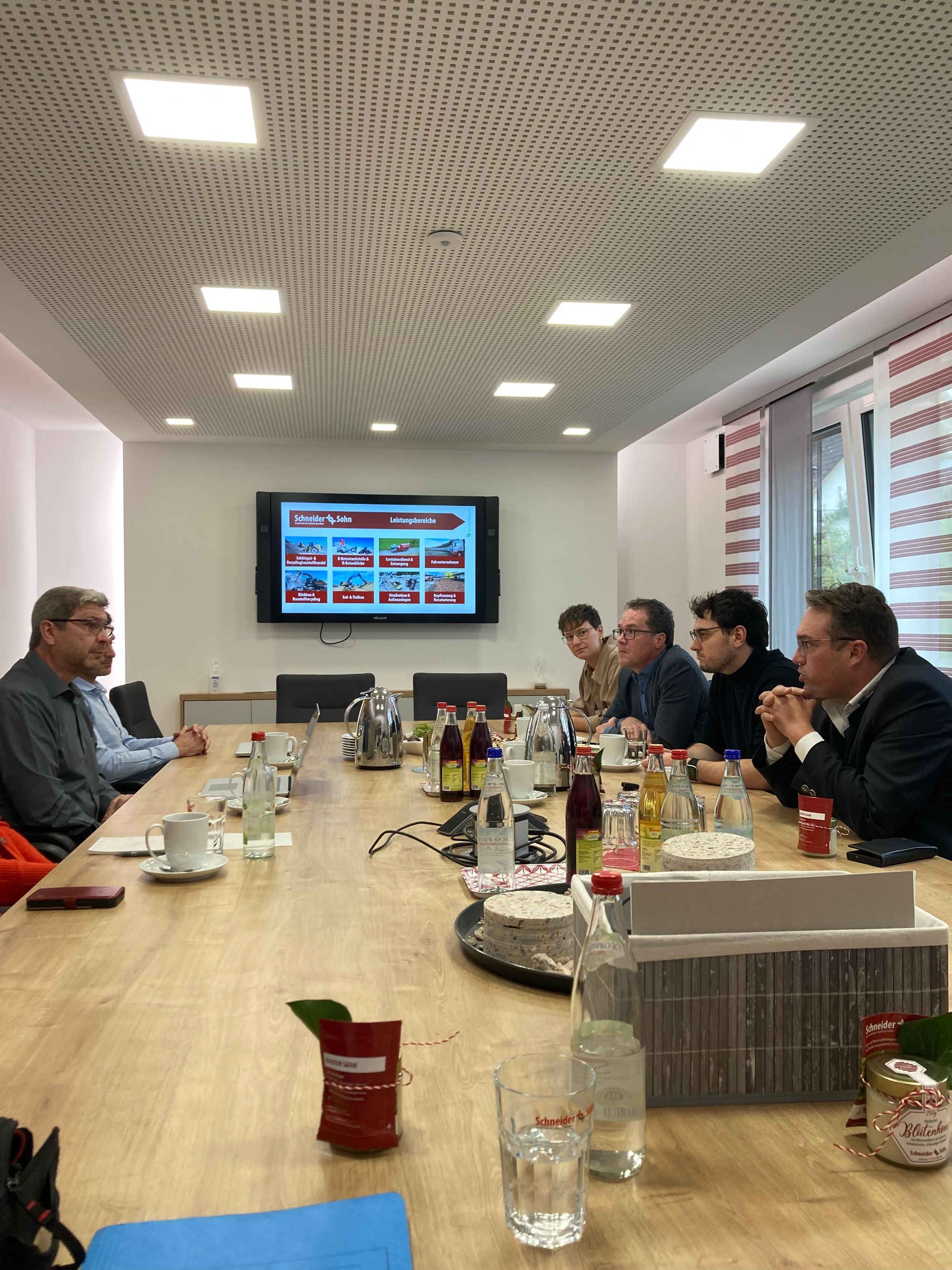 Im Anschluss an das Gespräch besuchten sie die Firma Schneider & Sohn in Gammesfeld, ein vielseitiges Unternehmen mit den Bereichen Tiefbau, Fuhrunternehmen, Entsorgung, Abbruch, Containerdienst und Handel mit Produkten.