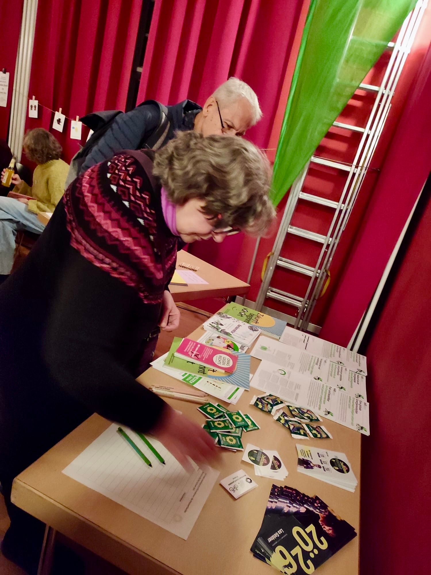 Gute Stimmung, gute Musik und ein lebendiger Austausch über die Demokratie: so präsentierte sich am Samstagabend (08.11.) im Theatersaal des Alten Schlachthauses "Demokratie fetzt". Bündnis 90/Die Grünen, die Ev. Gesamtkirchengemeinde SHA, Pro Familia, "Omas gegen Rechts", die Ev. Fachschule für Sozialpädagogik, "Ohne Rechtsaußen" und "Parents for Future" hatten dazu eingeladen. Die lockere Atmosphäre wurde vom Infomarkt der beteiligten Gruppierungen getragen. Die Inhalte waren durchaus brisant: es ging um Themen wie Vielfalt in der Bildung und Bildungsgerechtigkeit, die Frage, wie KI künftig uns und unsere Demokratie beeinflussen könnte, Nachhaltigkeit und Klimaschutz oder allgemein die demokratischen Werte, die immer wieder aktiv gepflegt werden müssen.