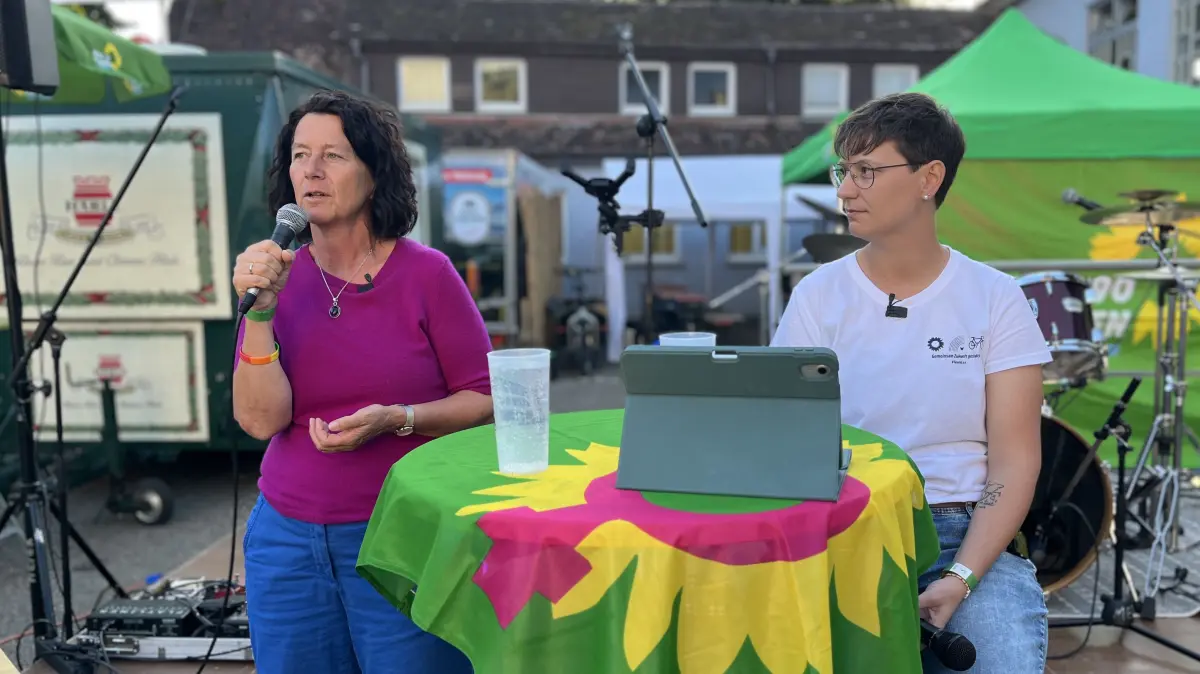 Grüner Volksfestauftakt: Wie steht es um die Krankenhäuser in Baden-Württemberg und um die Situation der Pflegekräfte? Und welche Gefahren lauern in der Wirtschaftspolitik? Grüne Landtagsabgeordnete Petra Krebs, Landtagskandidatin Lea Geldner und EU-Abgeordnerter Rasmus Andresen klären auf.
